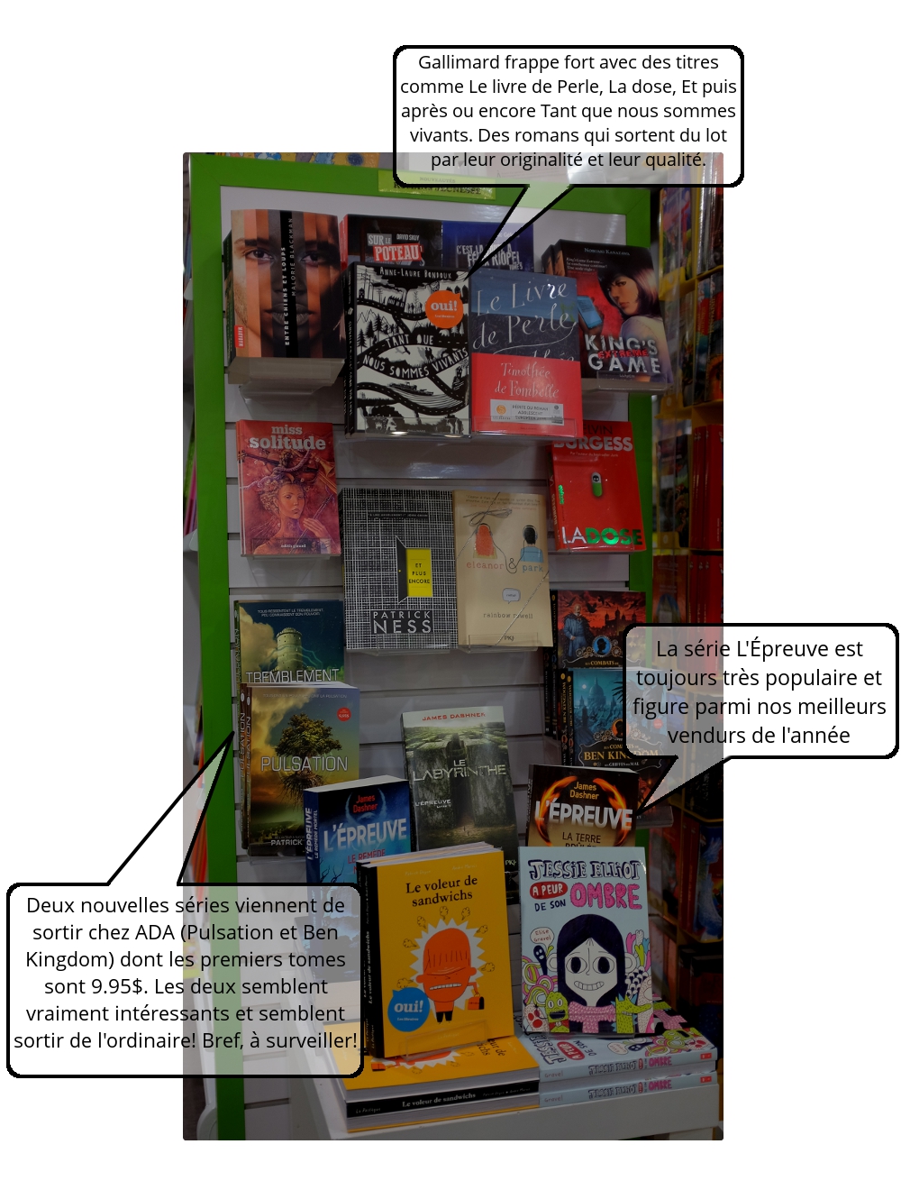 Pour ce premier lundi, voici un présentoir de la librairie Verdun, à Montréal, où travaille notre collaborateur Patrick Isabelle !
